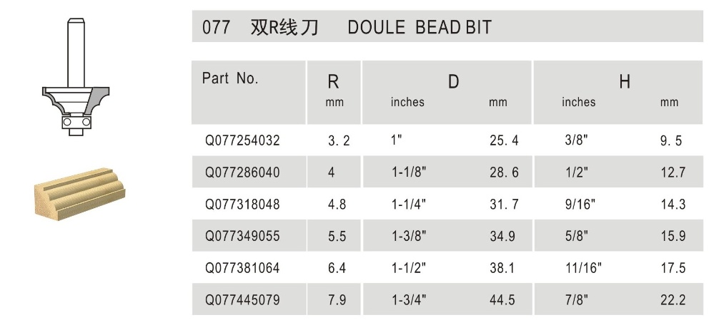 077 双R线刀 Double Bead Bit